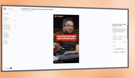 视频是当下的主流内容形式,但一小时的长访谈和几十秒的短片段适用场景不同。Olivia既要制作长视频,也要输出短内容,她需要使用Overlap导入原始素材,让AI自动识别高光时刻、剪好片、加好字幕,还会根据系统的“片段评分”快速挑出值得单独发布的内容。