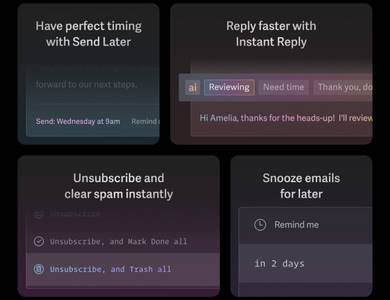 在加入AI功能前,它就以“最快的邮箱体验”为卖点,帮助用户快速完成收件箱整理和任务跟进。